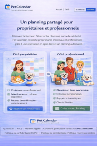 Notre plateforme de mise en relation entre propriétaires et professionnels animaliers simplifie la prise de rendez-vous chez un pet-sitter, éducateur canin ou toiletteur.